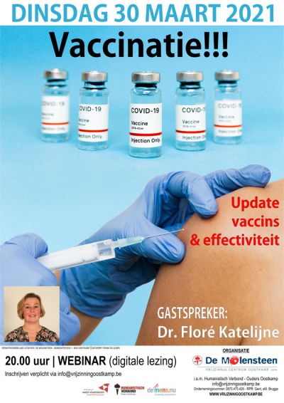 Spreekster van deze webinar is Dr. Floré Katelijne, klinisch bioloog en ziekenhuishygiëniste in het A.Z. Sint Jan te Brugge. Sinds het begin van de Covid-19 pandemie staat zij in de frontlinie. Via webinars houdt ze zorgverleners en het brede publiek op de hoogte van de stand van de wetenschap in verband met de pandemie en nu ook i.v.m. vaccins en vaccinaties.