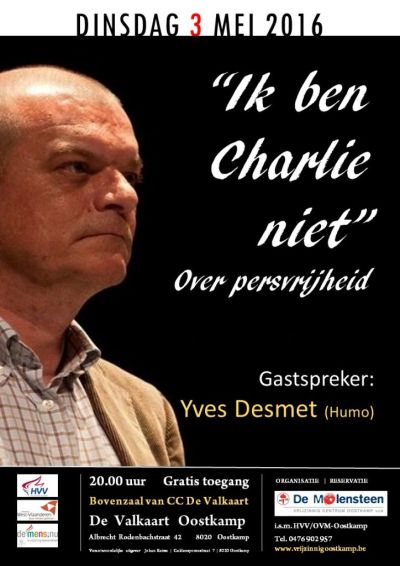 “Vierentachtig procent van de wereldbevolking leeft in een land waar de vrijheid van meningsuiting aan banden is gelegd. Wie zich durft uit te spreken riskeert bedreigingen, celstraf, marteling of zelfs de doodstraf. Dat weerhoudt burgers, journalisten en actievoerders wereldwijd niet om hun overtuiging te uiten, hun waarheid te spreken en de feiten boven te laten komen. Maar ook dichter bij huis staat de vrijheid van meningsuiting onder druk” (zie de affiche van het Festival van het Vrije Woord – zaterdag 2 mei 2015).